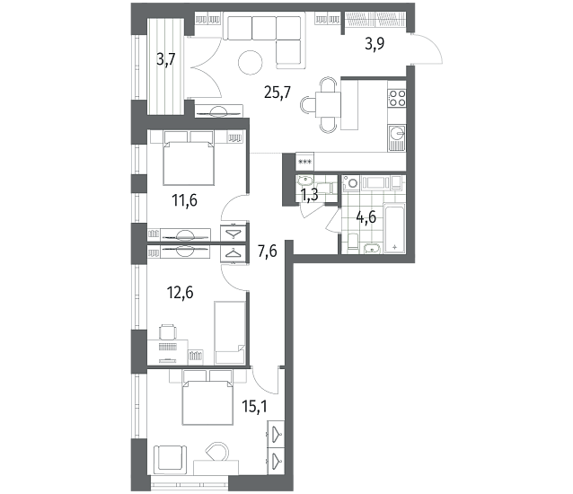 3-комнатная 86.9 м2