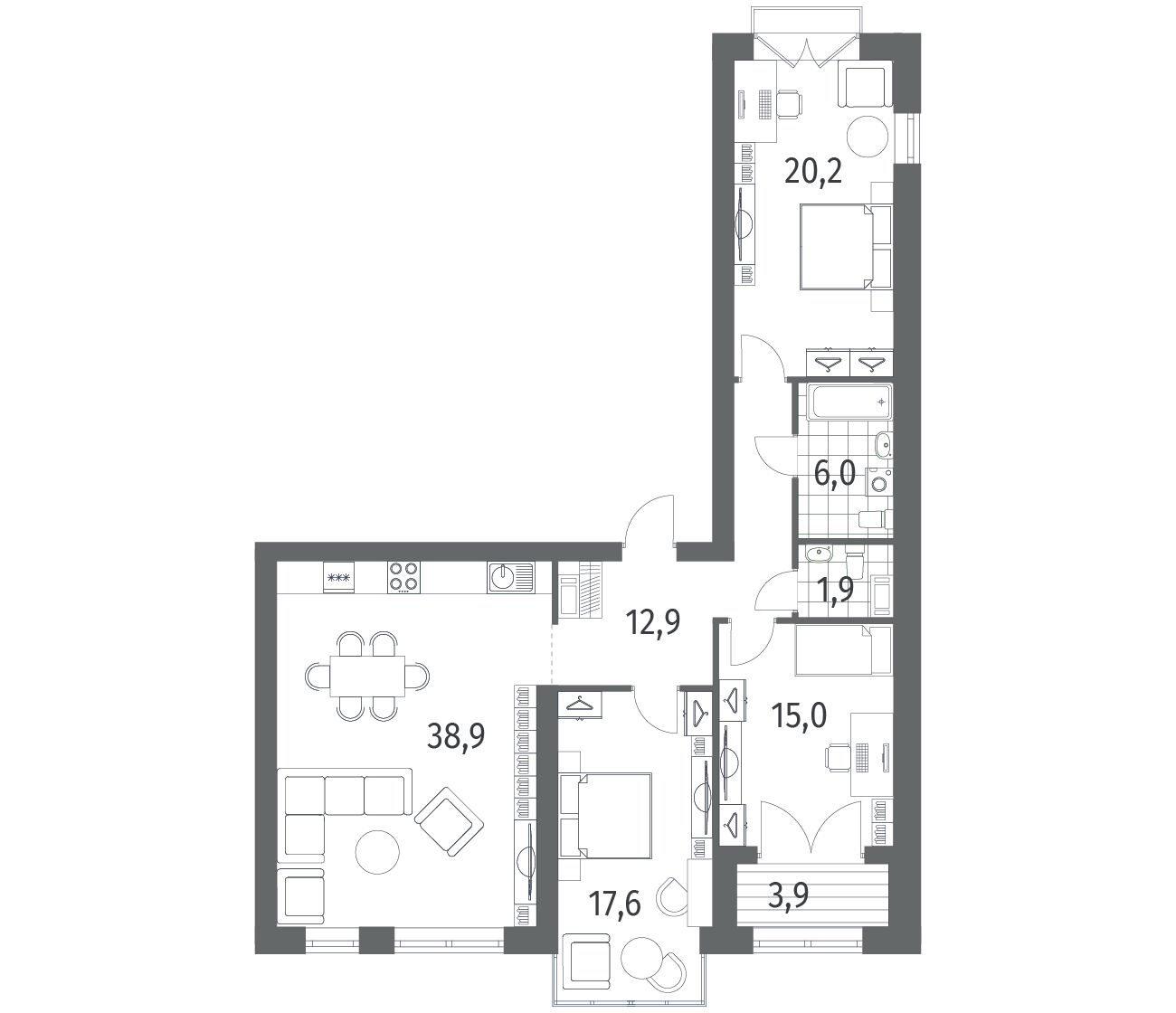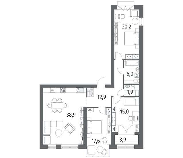 3-комнатная 114.5 м2