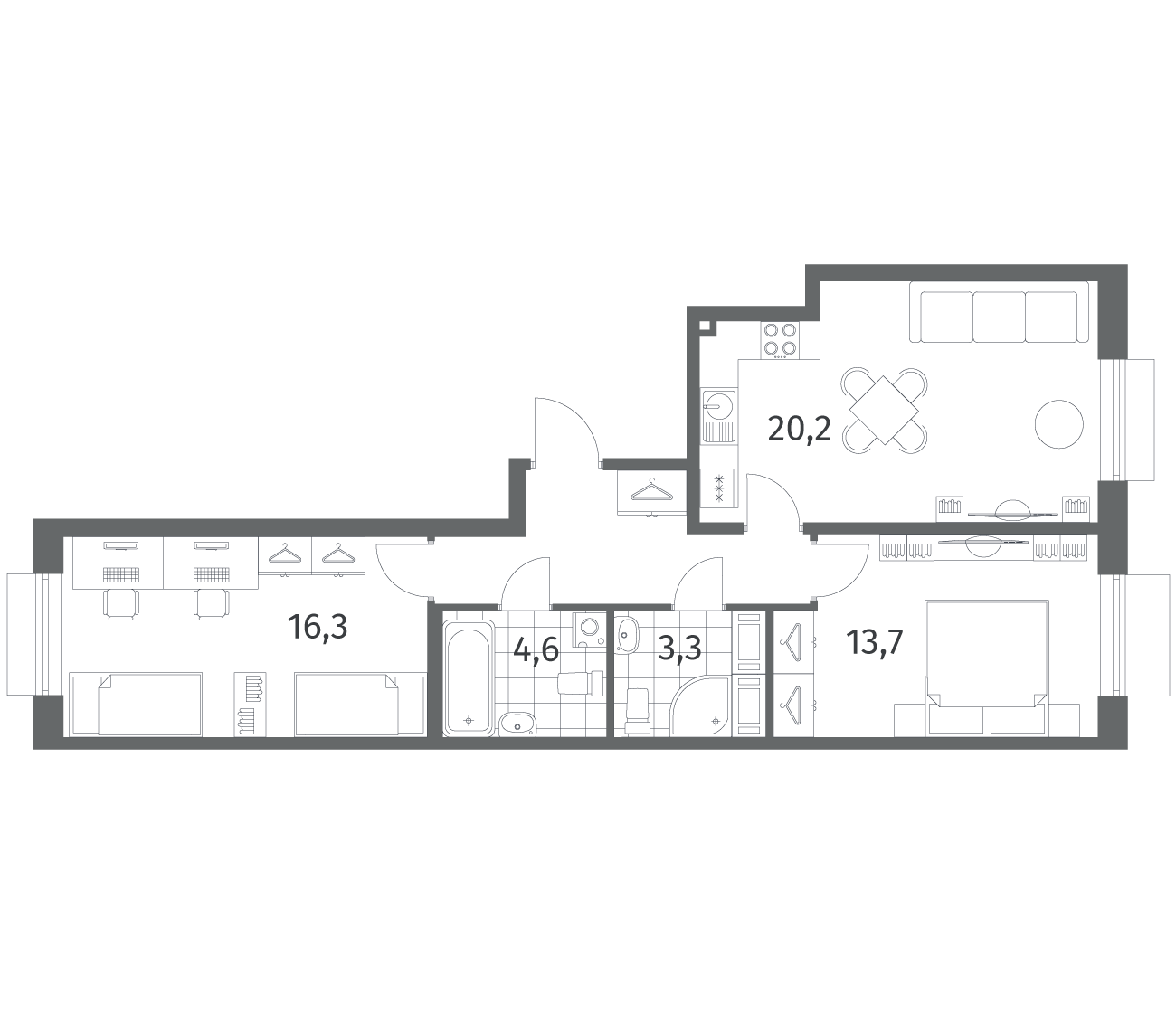 2-комнатная 66 м2