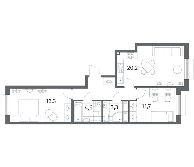 2-комнатная 64 м2