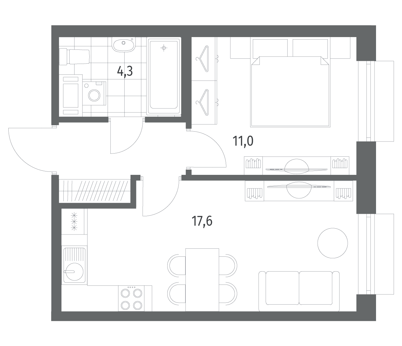 1-комнатная 37.1 м2