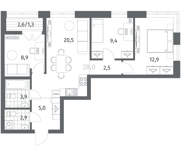 3-комнатная 67.33 м2