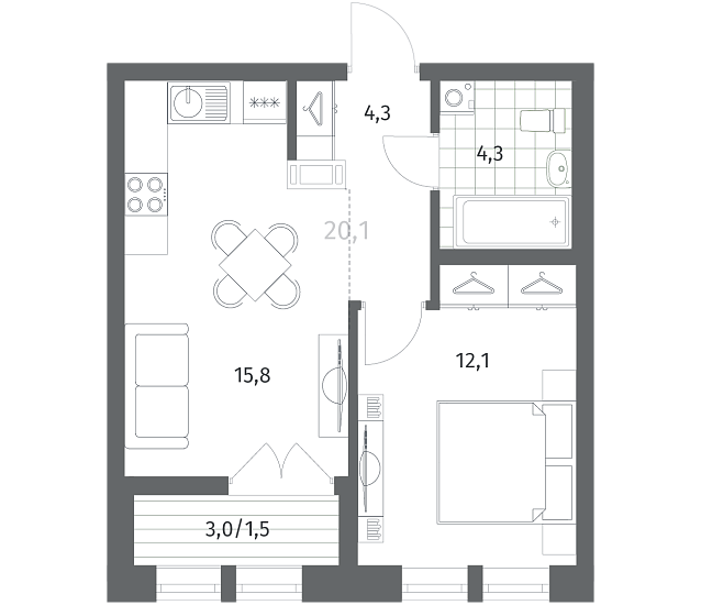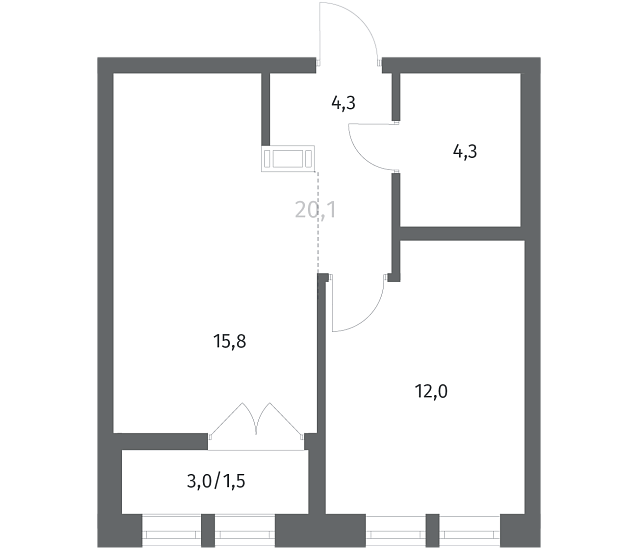 1-комнатная 37.89 м2