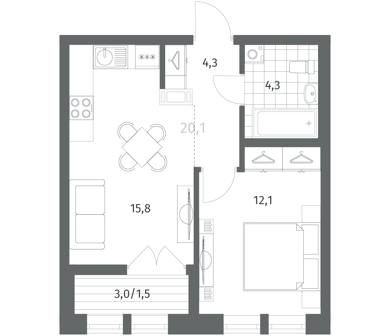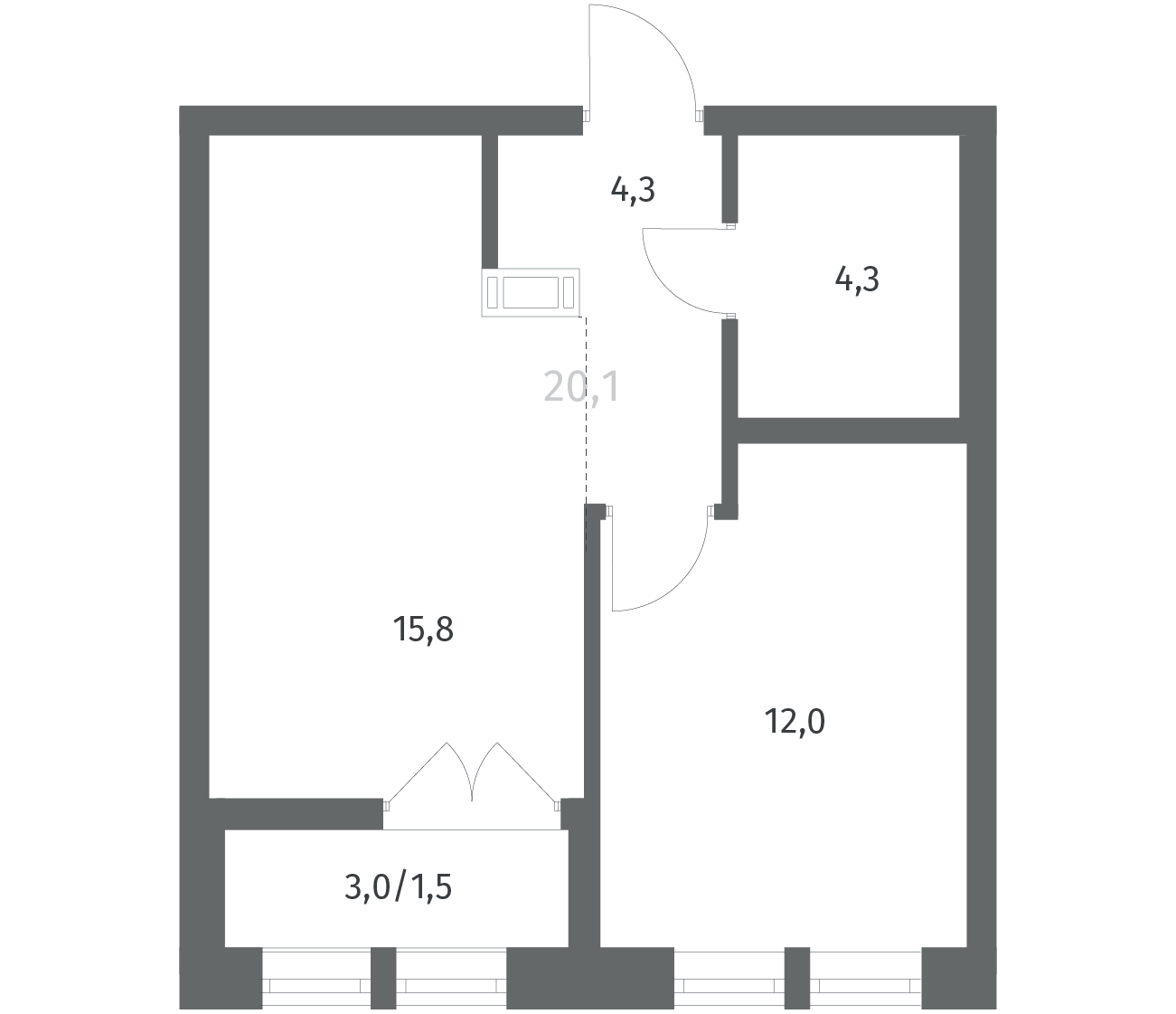 1-комнатная 37.89 м2