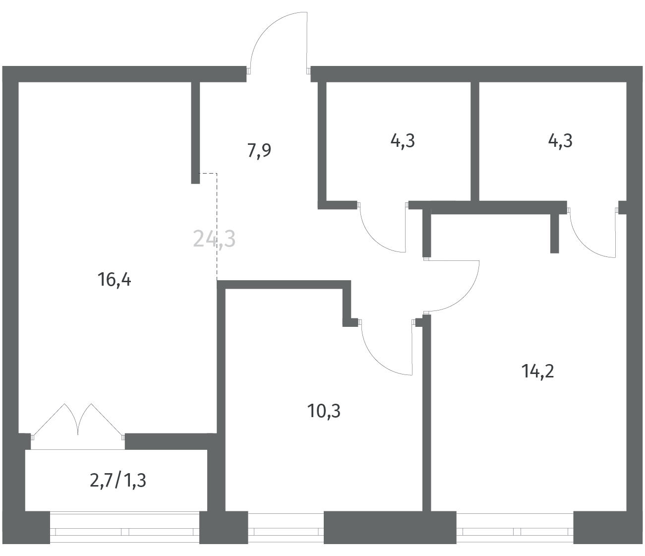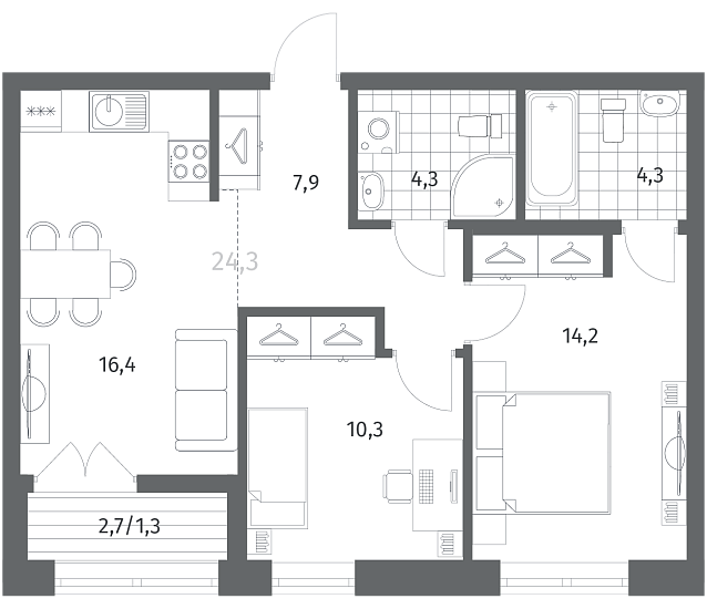 2-комнатная 58.75 м2