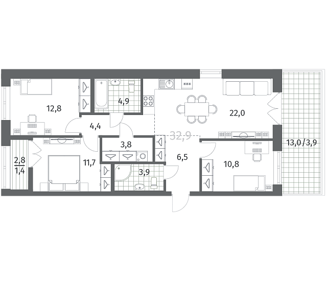 3-комнатная 86.16 м2