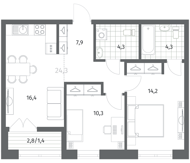 2-комнатная 58.77 м2