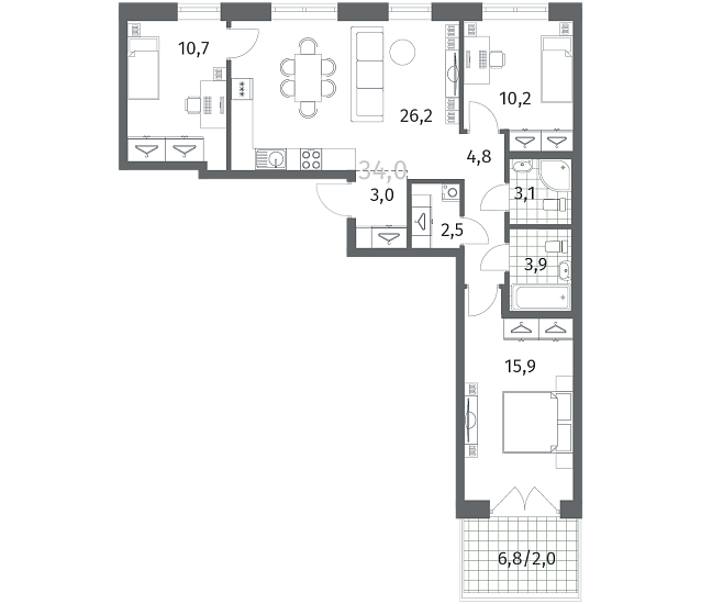 3-комнатная 82.36 м2