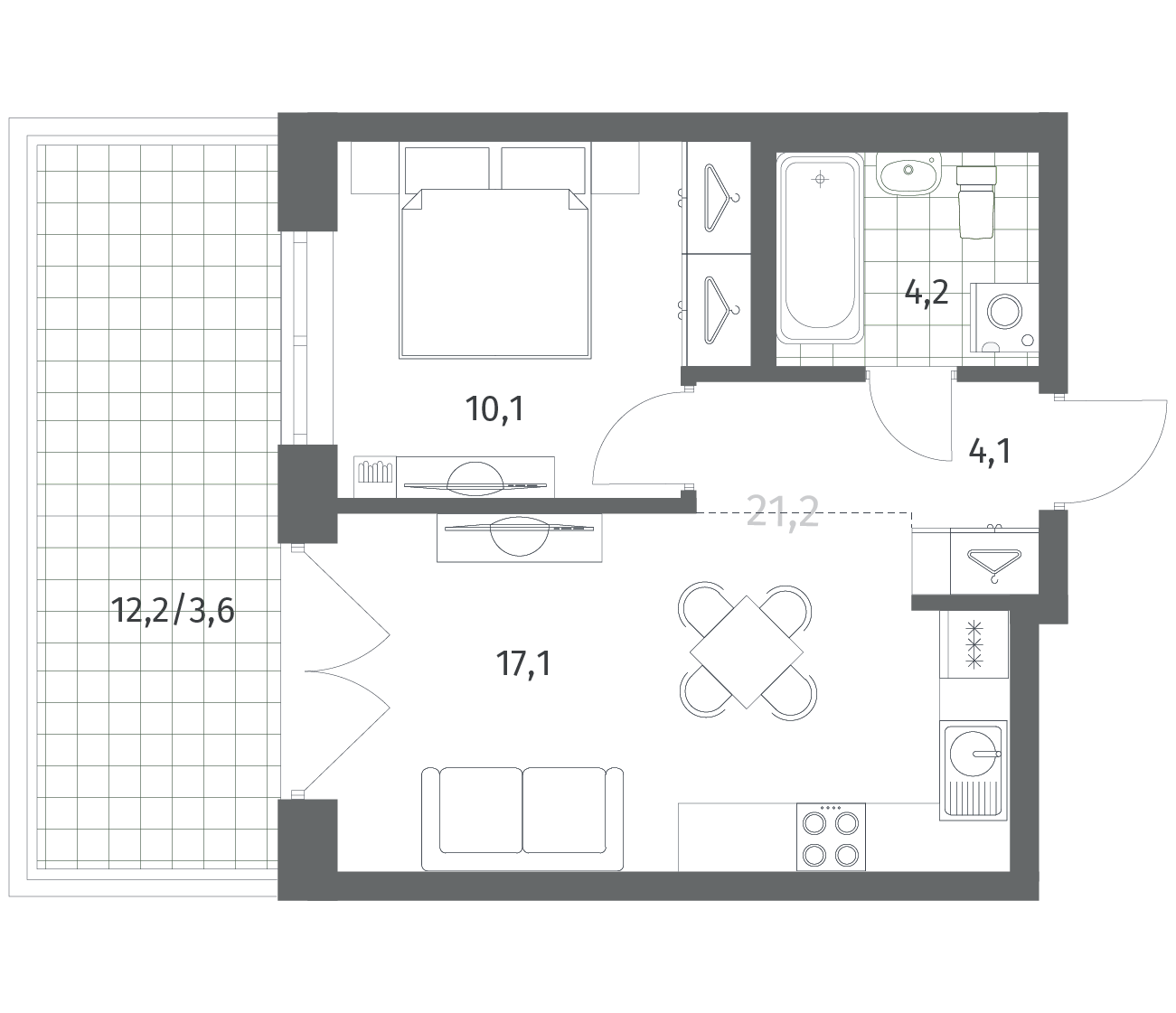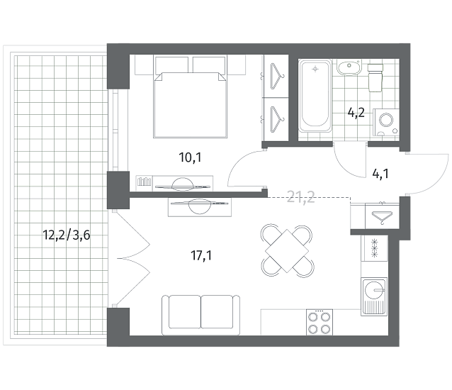 1-комнатная 39.23 м2