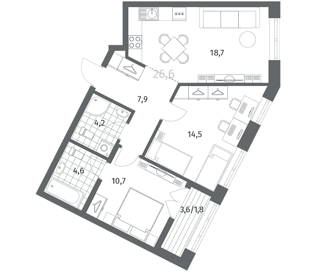 2-комнатная 62.44 м2