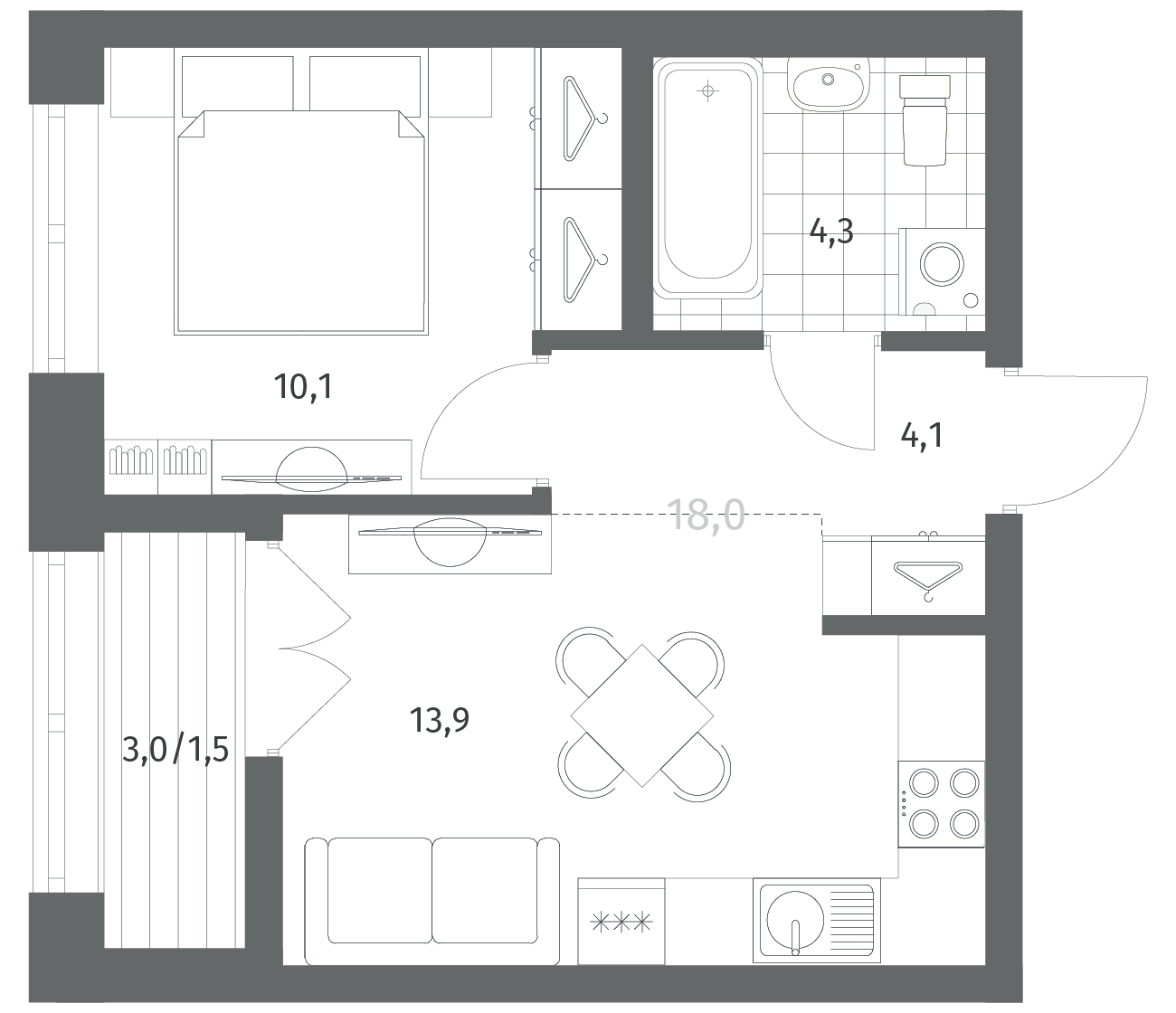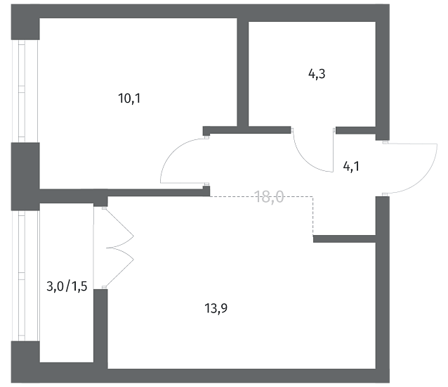1-комнатная 33.9 м2
