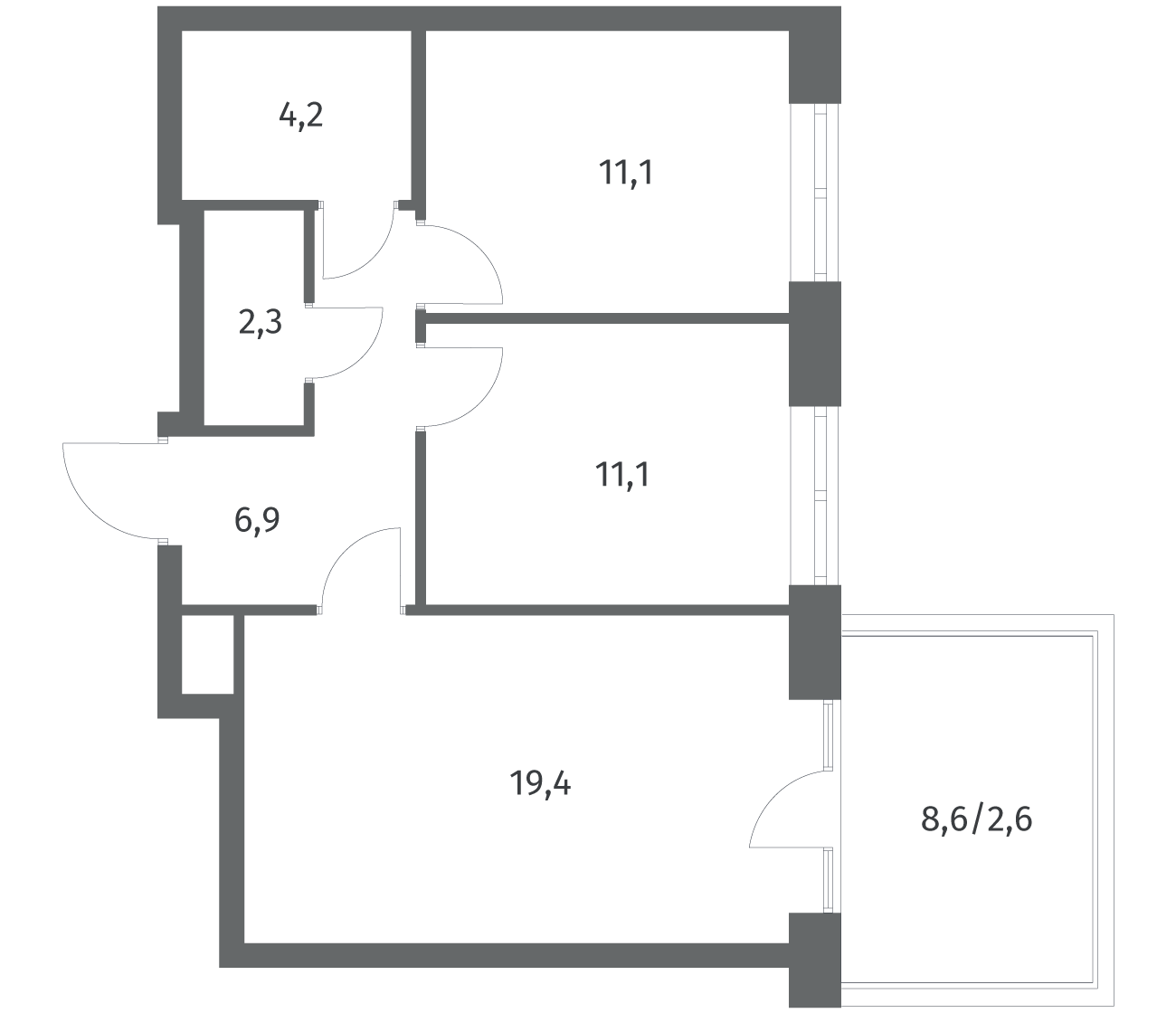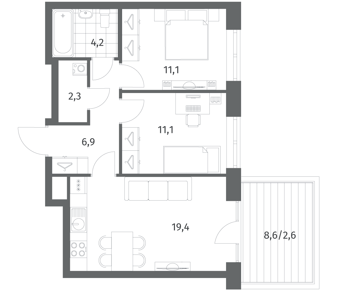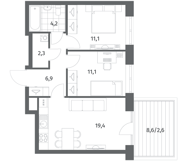2-комнатная 57.54 м2