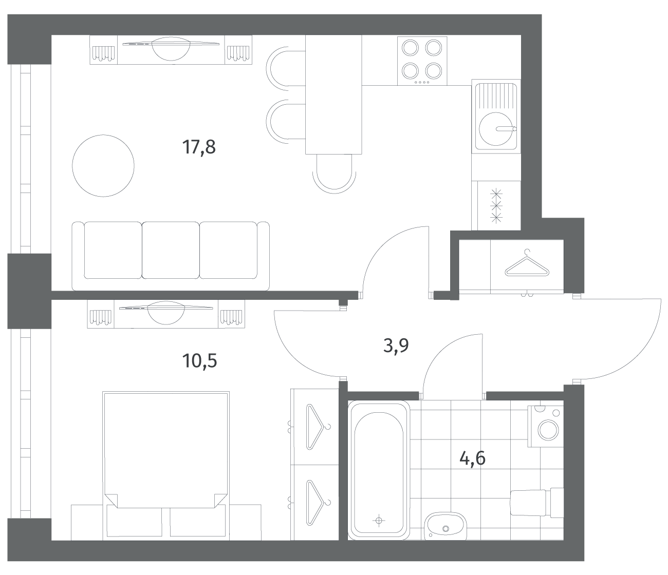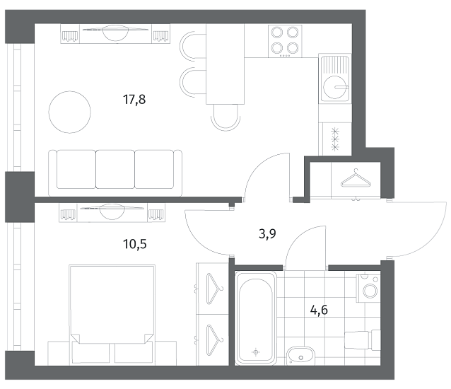 1-комнатная 36.91 м2