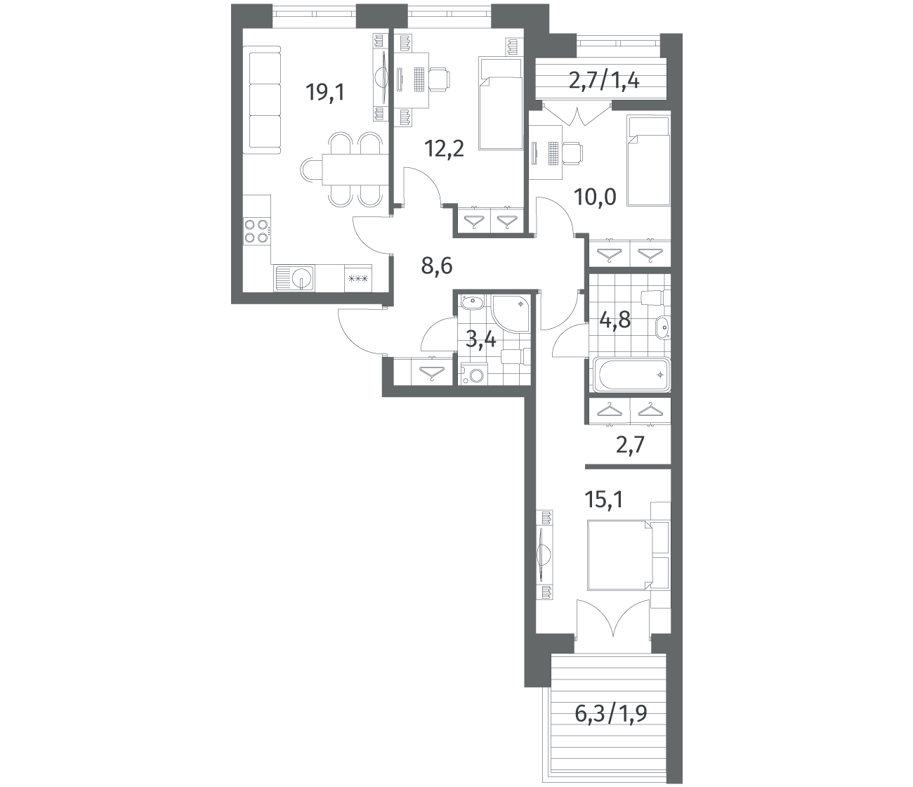 3-комнатная 79.06 м2