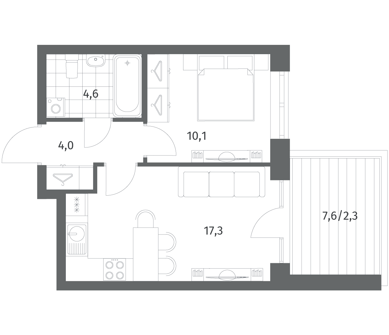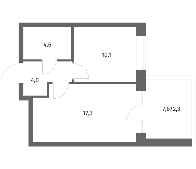1-комнатная 38.25 м2