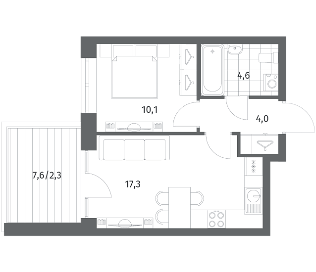 1-комнатная 38.25 м2