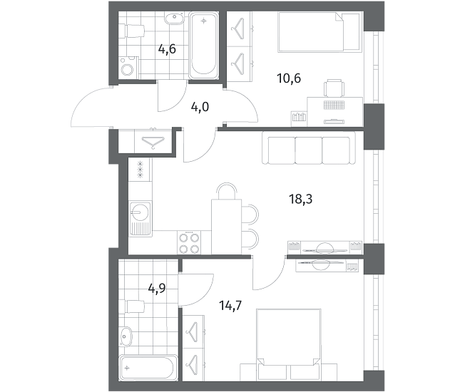 2-комнатная 57.11 м2