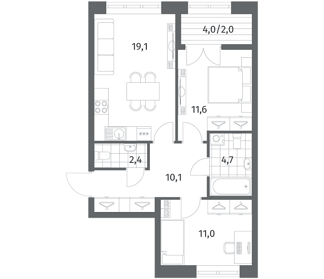 2-комнатная 60.94 м2