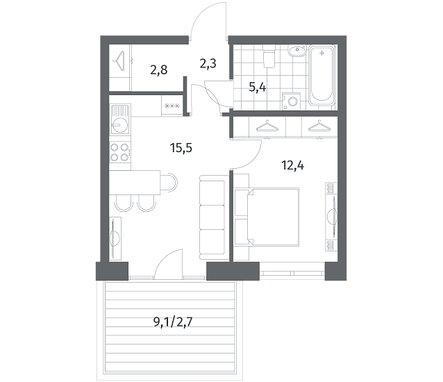 1-комнатная 41.18 м2