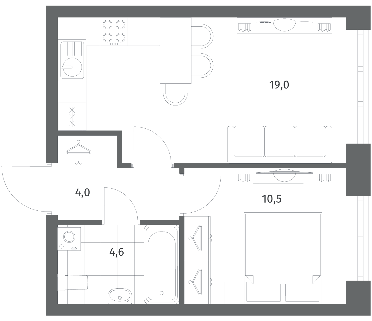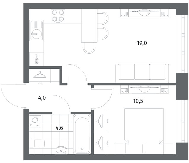 1-комнатная 38.17 м2