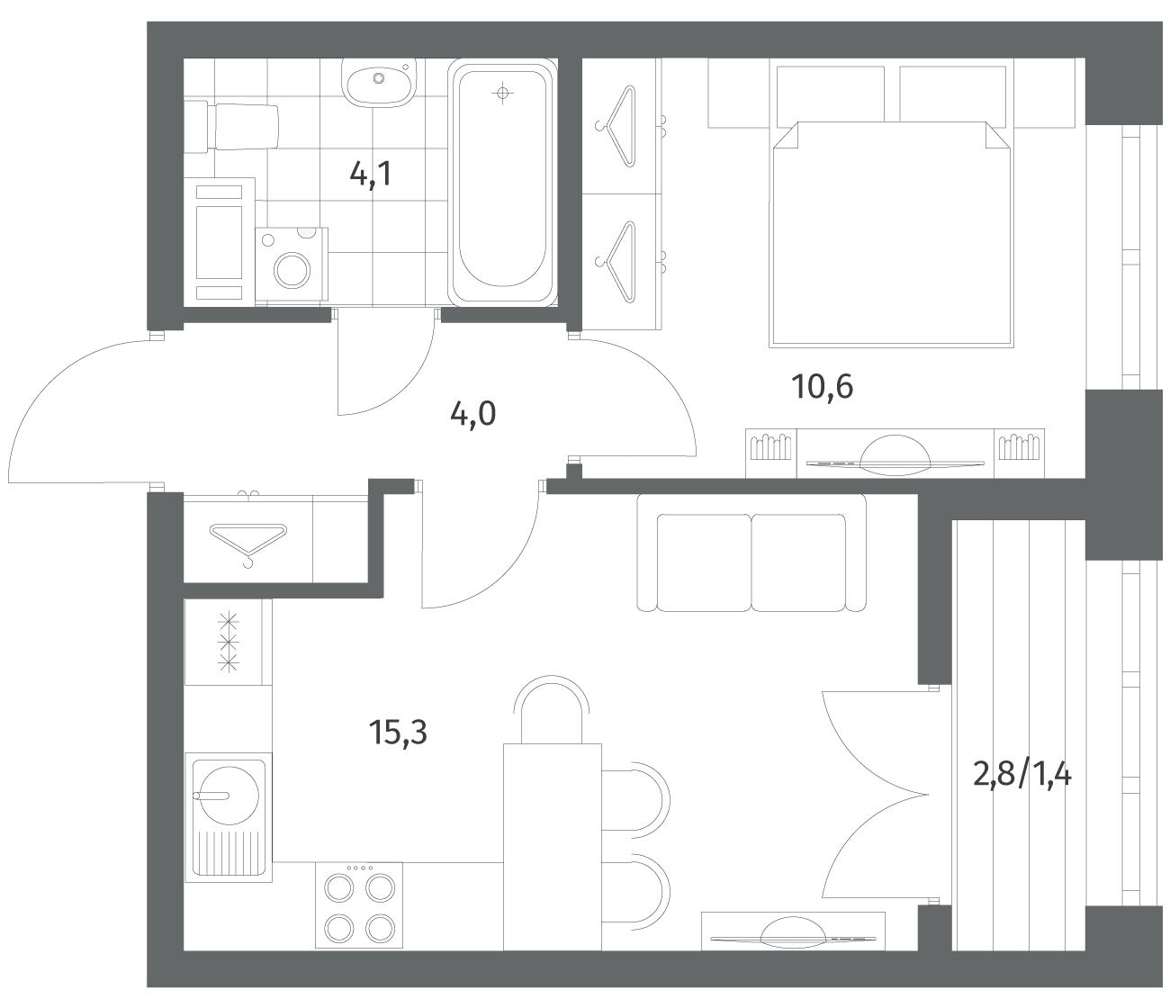 1-комнатная 35.4 м2