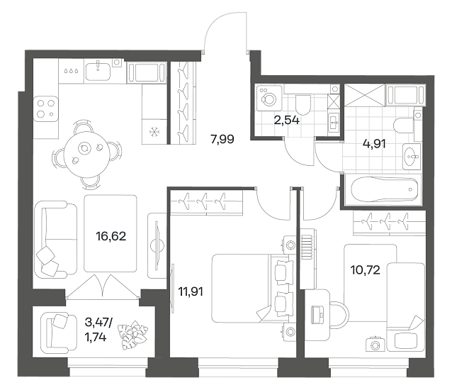2-комнатная 56.43 м2