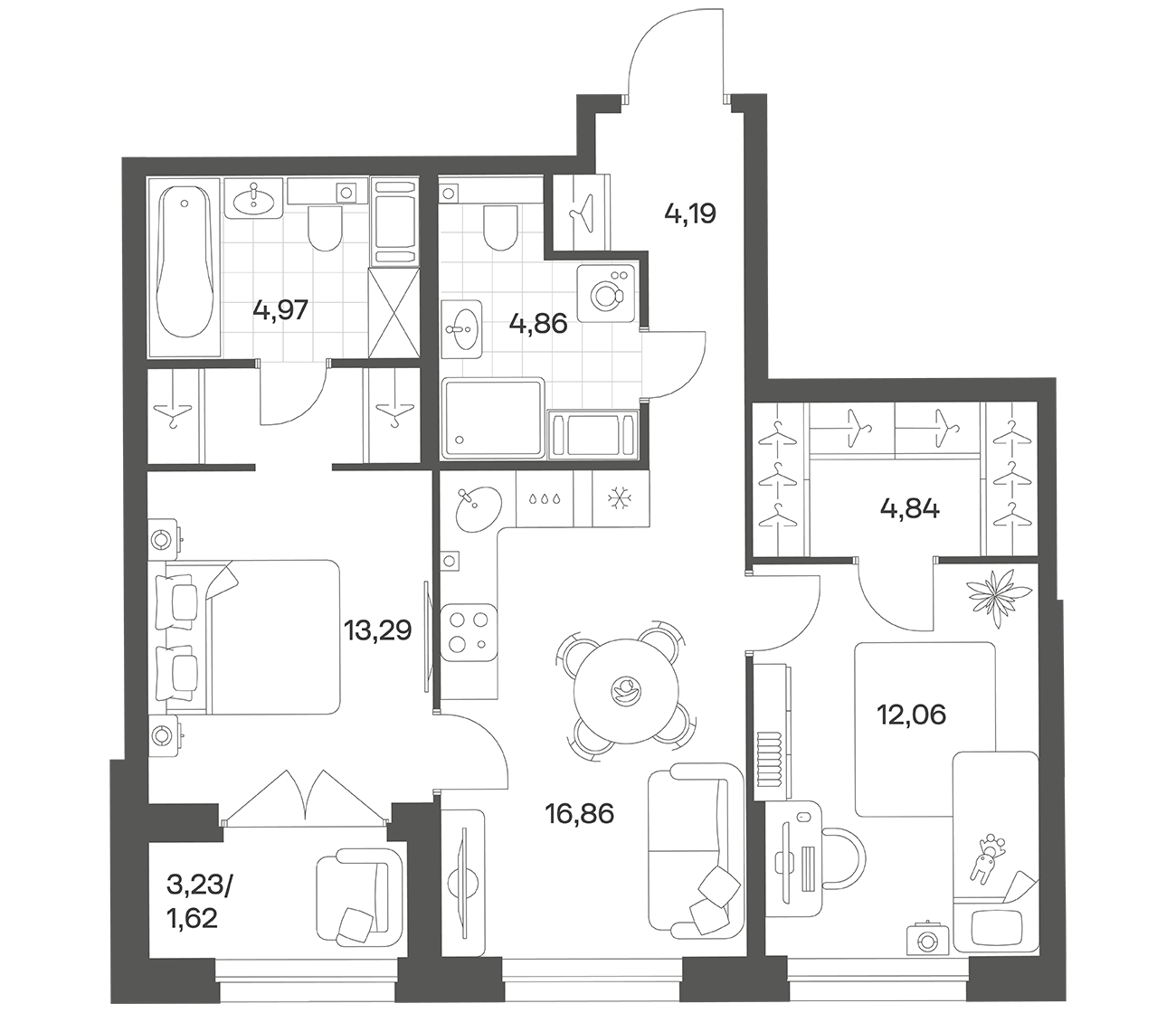 2-комнатная 62.69 м2