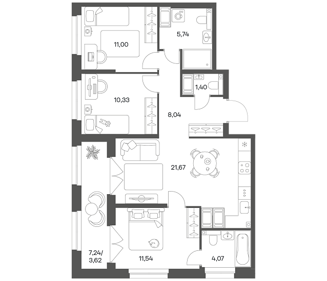 3-комнатная 77.41 м2