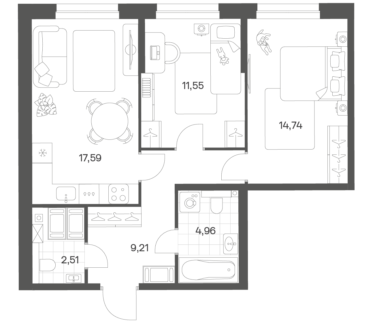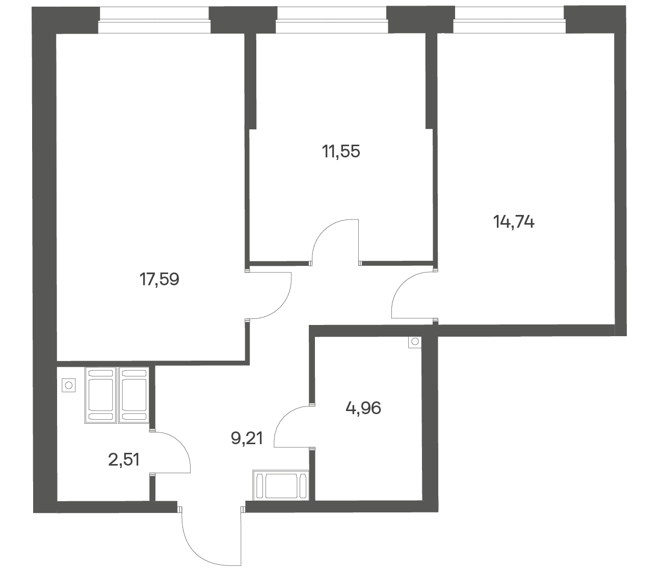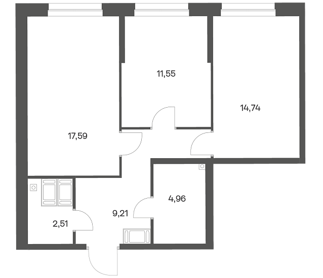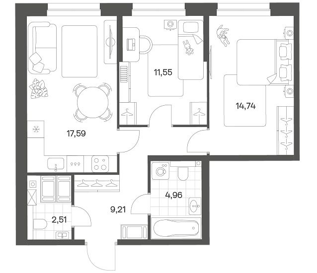 2-комнатная 60.56 м2