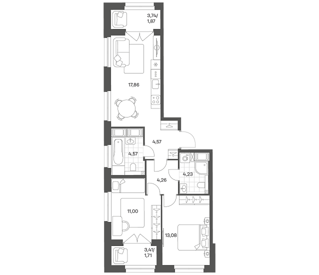 2-комнатная 63.15 м2