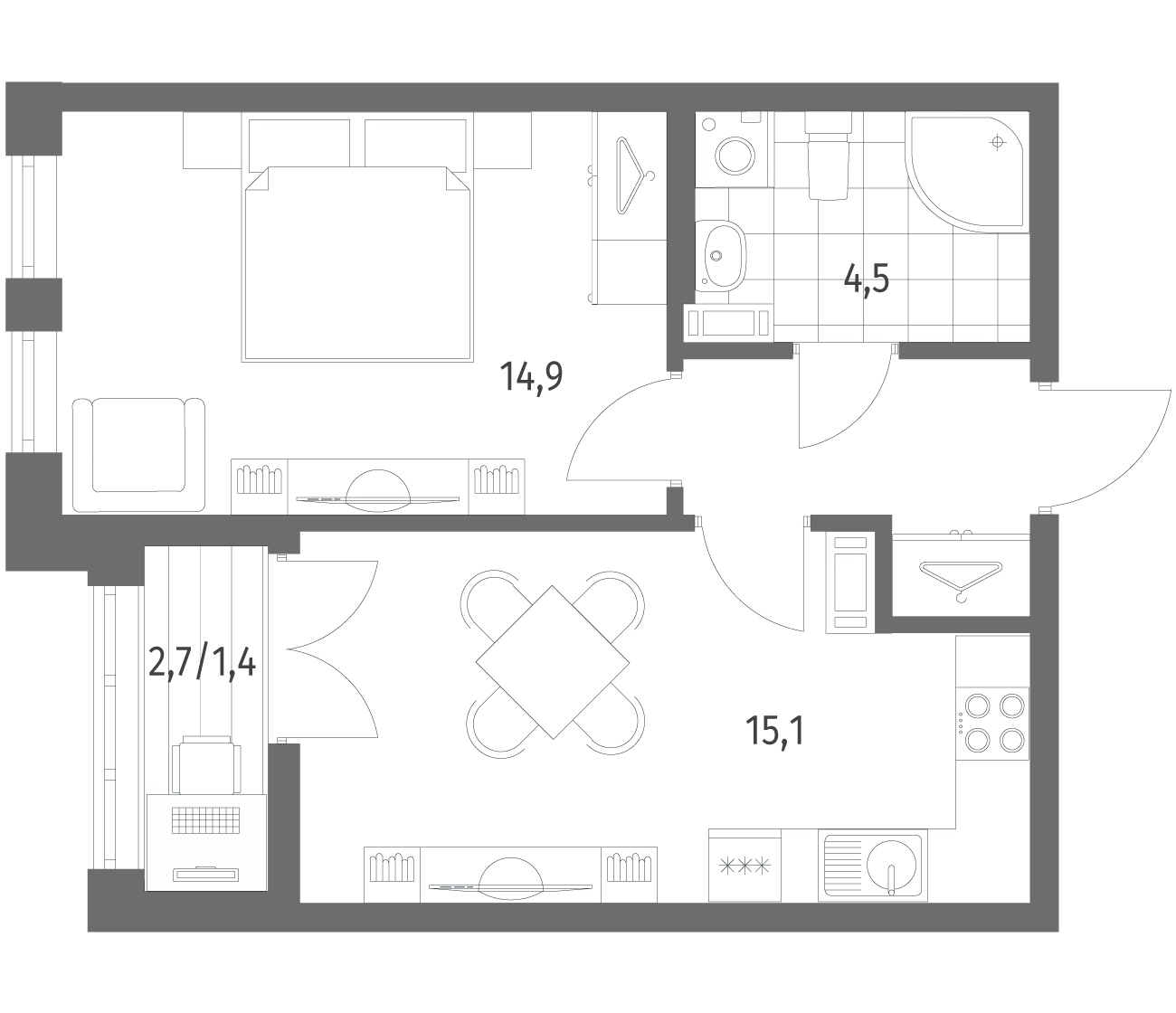 1-комнатная 39.9 м2