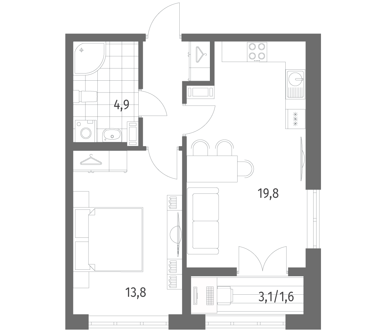 1-комнатная 44.2 м2
