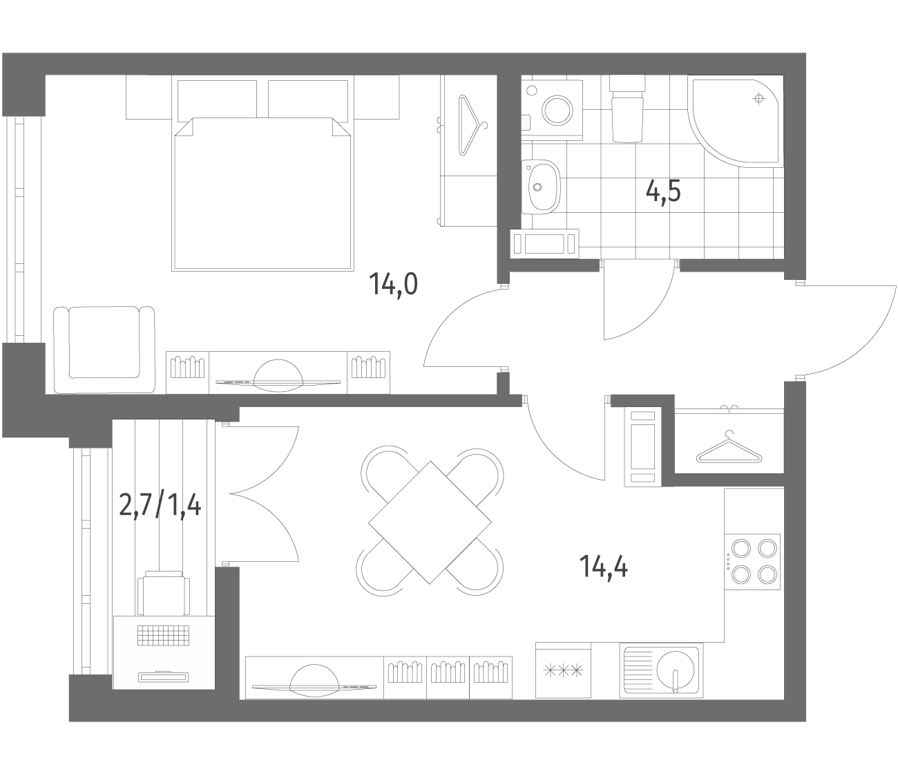 1-комнатная 38.5 м2
