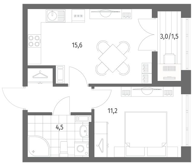 1-комнатная 36.5 м2