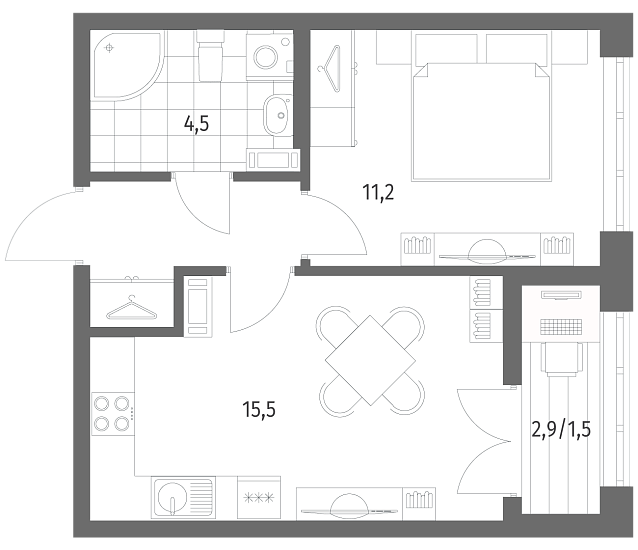 1-комнатная 36.4 м2