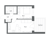 Лот 4 1-комнатная 38.26 м² 17.26 м² 2