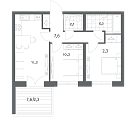 Лот 4 2-комнатная 58.73 м² 18.3 м² 2