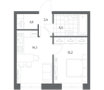Лот 4 1-комнатная 36.6 м² 14.05 м² 2