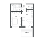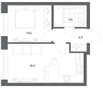 Лот 4 1-комнатная 37.55 м² 18.34 м² 2