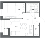 Лот 3 1-комнатная 37.97 м² 18.47 м² 2