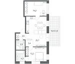 Лот 3 2-комнатная 58.24 м² 21.23 м² 2