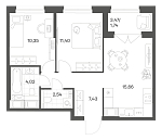 Очередь 1 | 2-комнатная | 55.52 м² | 15.52 м² | 19 |