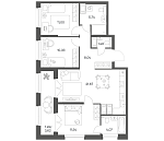 Очередь 1 | 3-комнатная | 77.41 м² | 21.67 м² | 19 |