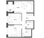 Очередь 1 | 2-комнатная | 60.56 м² | 17.59 м² | 19 |