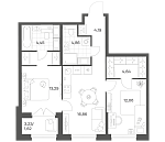 Очередь 1 | 3-комнатная | 77.41 м² | 21.67 м² | 15 |
