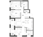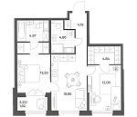 Очередь 1 | 2-комнатная | 62.69 м² | 16.86 м² | 9 |