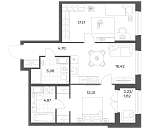 Очередь 1 | 3-комнатная | 80.53 м² | 19.11 м² | 3 |