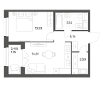Очередь 1 | 1-комнатная | 35.47 м² | 13.87 м² | 5 |