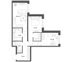 Очередь 1 | 1-комнатная | 42.89 м² | 14.8 м² | 3 |