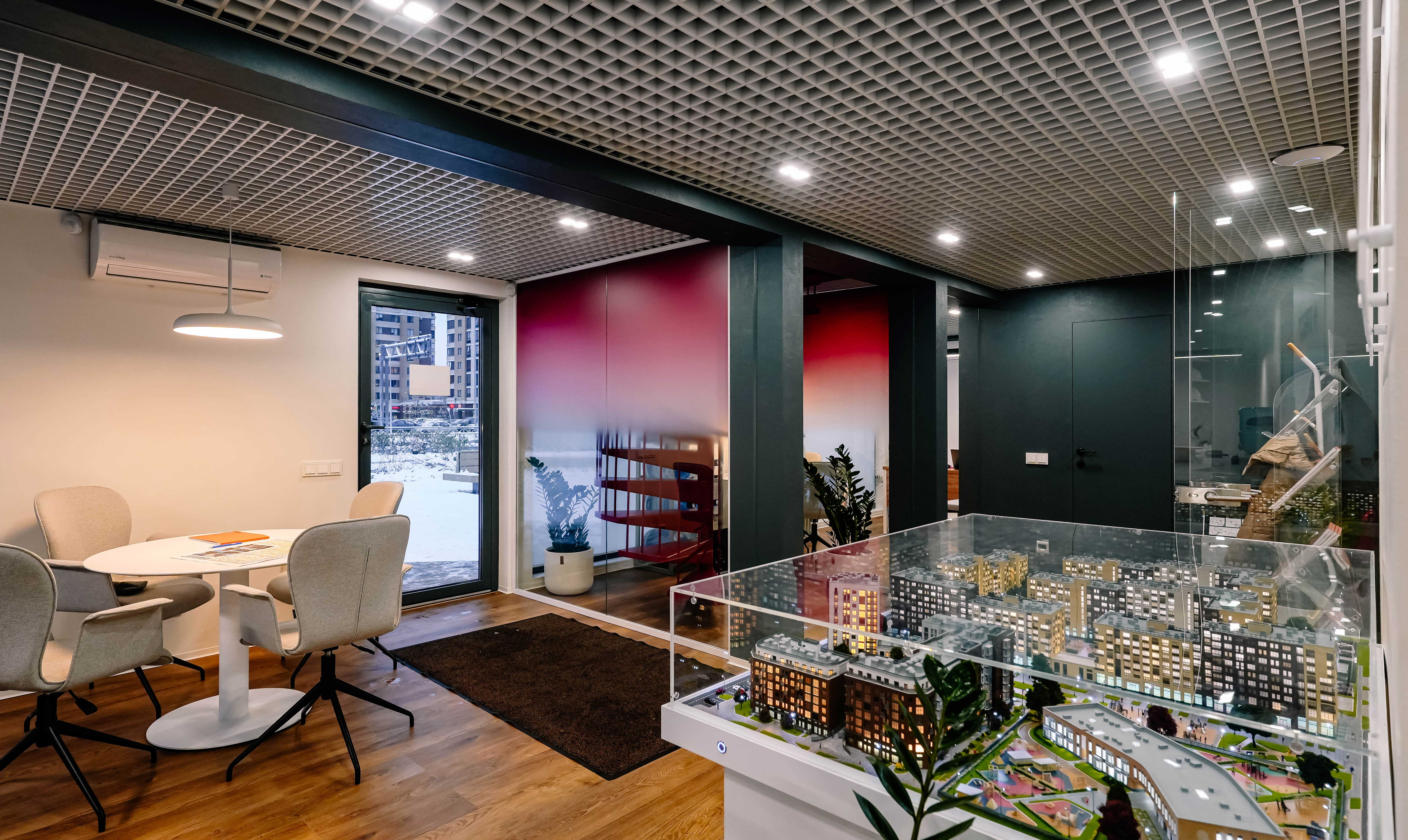 Офис оформлен в соответствии со стандартом Группы компаний — стильный дизайнерский фасад и большие панорамные окна. В офисе ежедневно работают несколько менеджеров, которые проконсультируют по всем вопросам, связанным с покупкой недвижимости, в том числе по оформлению ипотеки, рассрочки, приобретению жилья с использованием материнского капитала или схемы trade‑in.
